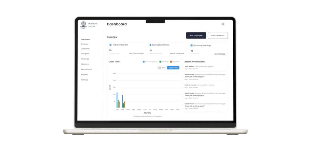 Staff Pivot is a comprehensive employee database web application developed to streamline HR and administrative functions. Built using PHP and MySQL, the application features both desktop and mobile-responsive views, allowing organizations to manage and track employee information efficiently. With modules for handling employee demographics, credentials, discipline, absences, recruitment, and meetings, Staff Pivot provides a holistic view of workforce management. Additionally, the application supports hierarchical user access for varied roles and includes architecture for future scalability and feature expansion.